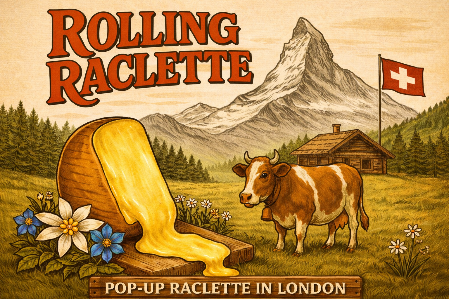 Rolling Raclette is a Swiss pop-up raclette concept created in 2025 by two Swiss founders and a Londoner sharing the same values.